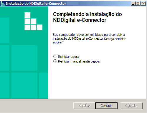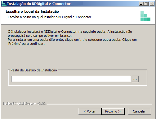 Passo 1: Execute o arquivo de instalação do e-Connector disponibilizado pela NDD. Você também pode fazer o download dos instaladores acessando o site da NDD, efetuando seu cadastro de usuário. Para isso, acesse www.NDD.com.br e efetue seu cadastro.