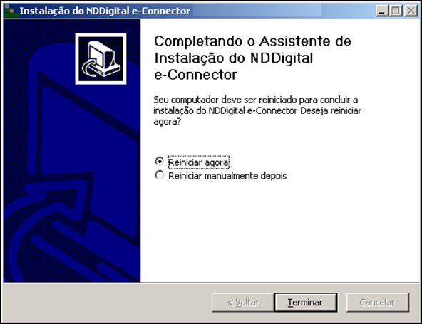 Passo 1: Execute o arquivo de instalação do e-Connector disponibilizado pela NDD. Você também pode fazer o download dos instaladores acessando o site da NDD, efetuando seu cadastro de usuário. Para isso, acesse www.NDD.com.br e efetue seu cadastro.