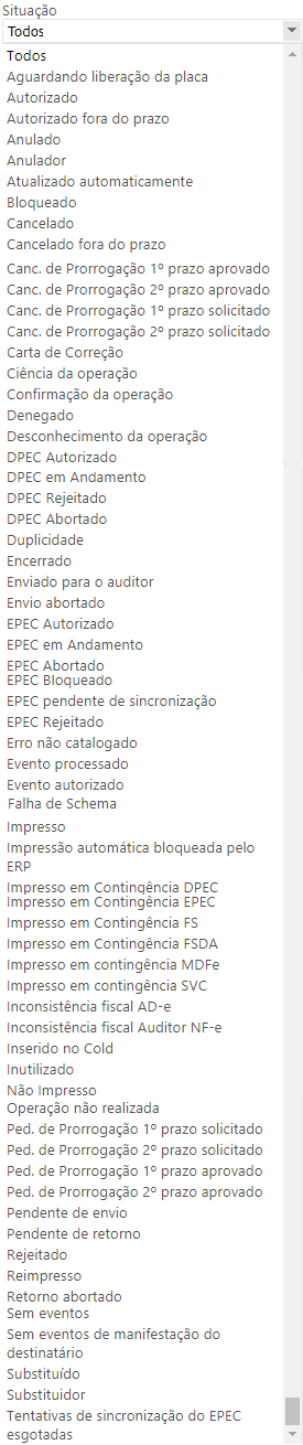 Todo documento entrará no sistema com a situação Pendente de envio, mesmo que já tenha sido processado anteriormente. Esta situação prevalecerá na visualização do e-Monitor somente quando o documento não possuir status de: Autorizado, Cancelado, Inutilizado ou Denegado. Caso o documento esteja com outros status, por exemplo, o status Rejeitado, esta situação prevalecerá.