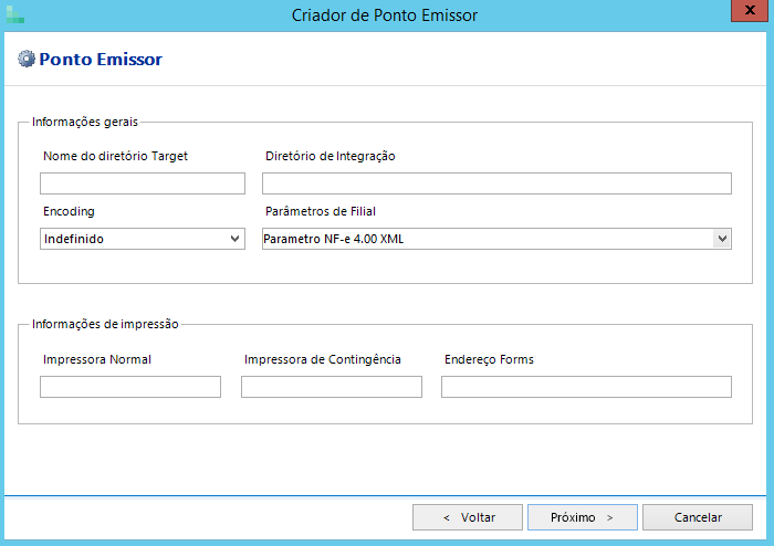 Insira as informações gerais e de impressão para o Ponto Emissor que esta sendo adicionado e clique em "Próximo";