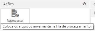 O botão Reprocessar permite que o evento com o status de Rejeitado/Rejeitado Duplicidade sejam colocados novamente na fila de processamento e, portanto, reprocessados.