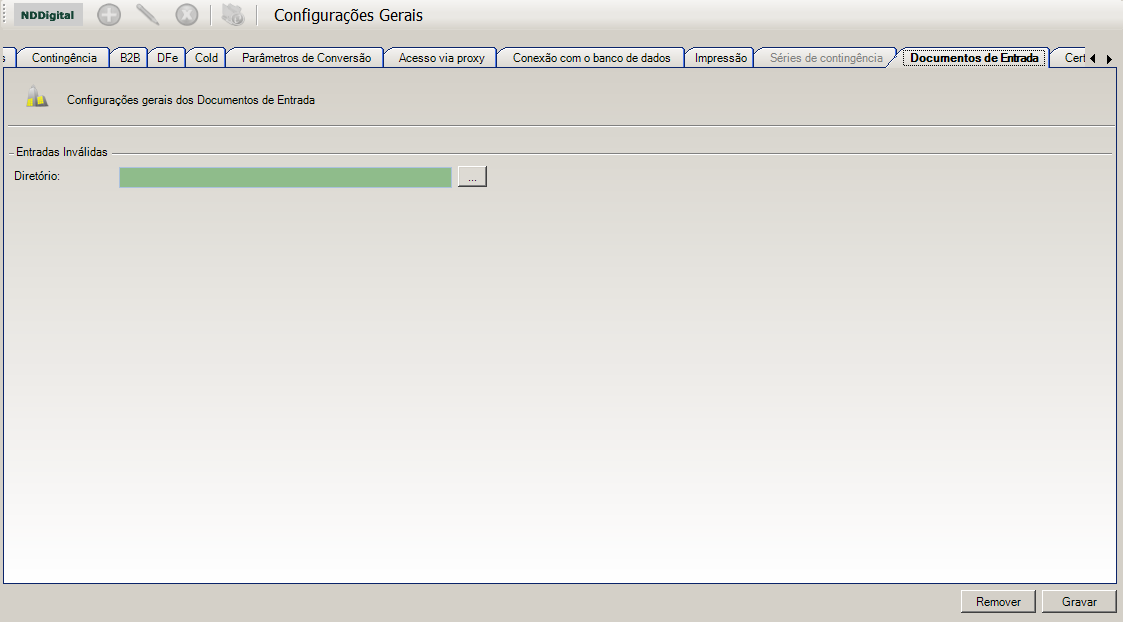 No campo Diretório selecione o local onde serão retornadas as entradas inválidas. O arquivo será salvo no seguinte caminho: Diretório de entradas inválidas\Nome do Job\Diretório específico\AAAA\MM\DD\nome documento inválido