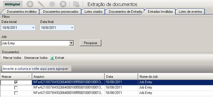Selecione o documento que deseja extrair do banco e em seguida clique em Extrair para selecionar o diretório onde o arquivo será salvo.