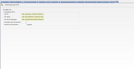 A aba do pix para configurar as url de comunicação com a api do pix