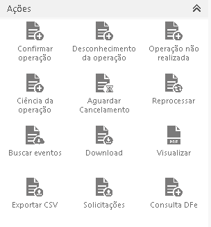 Algumas ações da aba Documentos de Entrada só estarão disponíveis de acordo com as permissões concedidas através do Connector Settings. Para maiores informações sobre permissões, consultar o Manual de Configuração e-Forms. |