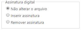 Para as opções acima de Assinatura digital é possível apenas selecionar uma opção. |