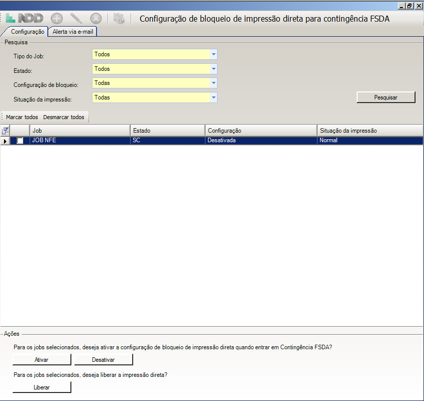 Ao selecionar um JOB e clicar em Desativar não haverá bloqueio ao cair uma impressão em contingência FS-DA, permanecerá normal.