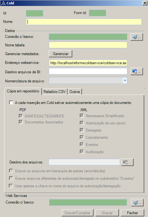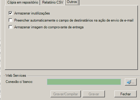 A opção Armazenar inutilizações quando selecionada, habilita a inserção de documentos de envio inutilizados para o COLD. Para novas conexões de cold a opção já vem marcada automaticamente por padrão, caso não tenha necessidade da inserção dos documentos inutilizados em cold, desmarcar a opção antes de Gravar/Compilar. Já em conexões já existentes do cold a opção estará desmarcada, caso seja necessário habilitar a inserção, marque a opção e grave o registro, sendo assim, novas inutilizações já serão inseridas em Cold.