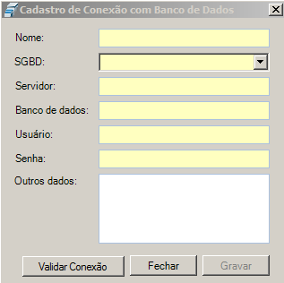 será apresentada uma nova janela para selecionar uma conexão com banco de dados pré-cadastrada.