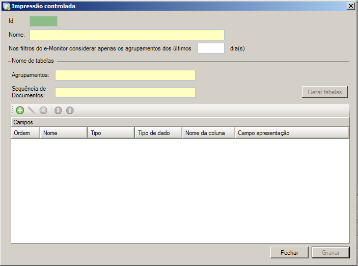Grupo: campo que será utilizado para informar o grupo ao qual o documento pertence, define o campo agrupador, ou seja, o campo que levará o nome do pacote de documentos de impressão.