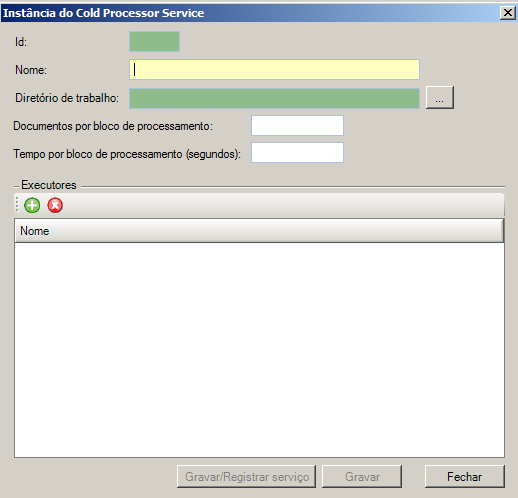 Em bases de processamento Oracle não é permitido cadastrar novas instâncias do Cold Processor Service, é permitido apenas à instância padrão.