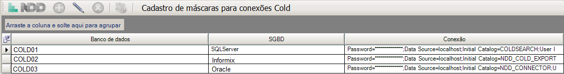 c.No grid à direita da tela serão exibidas as conexões Cold que já estejam compiladas. Selecione a conexão desejada e clique em Editar Cadastro de Máscara da Conexão.