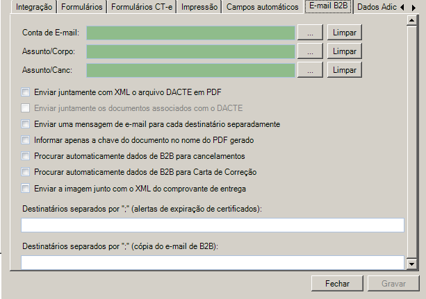 As opções presentes na aba de B2B estão interligadas, verificar cuidadosamente todas as opções marcadas ou selecionadas para o correto recebimento do e-mail com os arquivos desejados. |