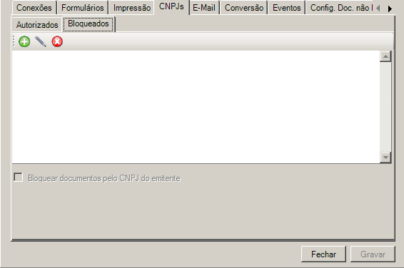 para inserir os CNPJs desejados, podendo ser informado apenas o CNPJ raiz e para ser bloqueado apenas os documentos com o CNPJ previamente cadastrado deverá ser marcado a opção abaixo: