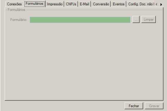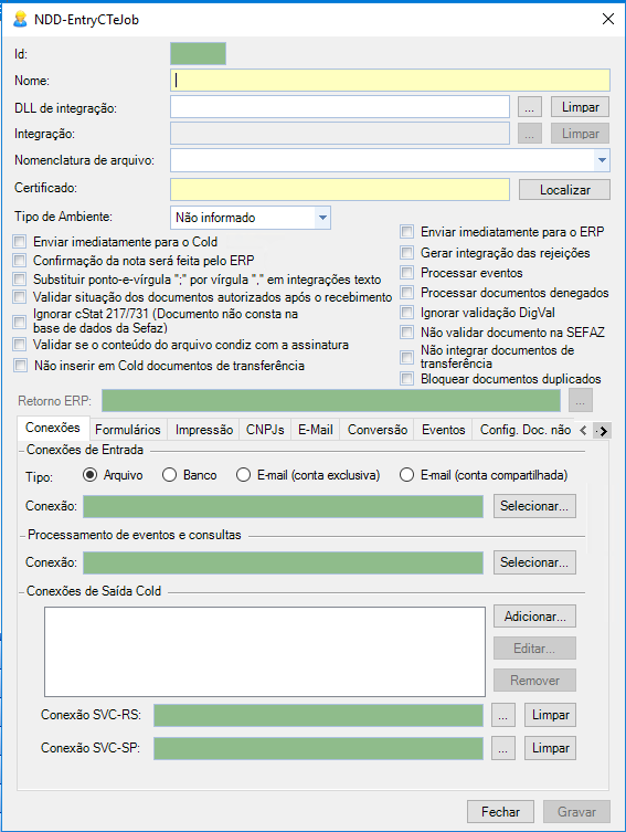 A aba Formulários CT-e será habilitada somente quando for selecionada nas conexões de saída uma conexão Cold CT-e.