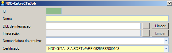 Chave do Job(Exclusivo para recepção): Essa entrada é exclusiva para a recepção do Proc e eventos. Permite que a mesma tabela no banco de dados seja utilizada por mais de uma entrada baseada em base de dados. Para que isso seja possível, o campo deverá conter um valor determinado pelo ERP, para diferenciar os arquivos de cada ponto emissor.