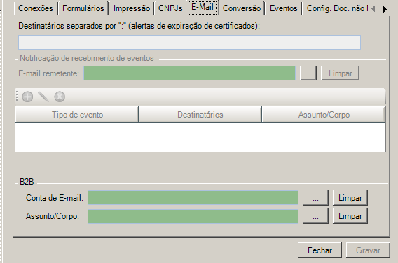Para que seja disparado um e-mail para um ou mais destinatários notificando sobre o recebimento de um evento de entrada, clique em