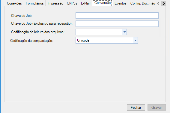 A aba conversão está disponível somente para entrada de eventos de manifestação do destinatário. Caso o Job não possua entrada baseada em banco de dados, o campo Chave do Job é opcional. Utilizando conexão de entrada baseada em BD, será obrigatório o preenchimento deste campo. |