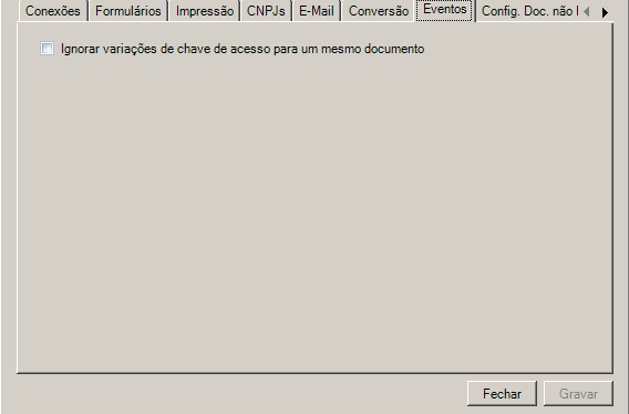 Esta opção será utilizada quando contiver variações na chave de um mesmo documento, ou seja, os documentos não serão bloqueados por terem caído para processamento com chave de acesso diferente da anteriormente processada. Porém se a opção estiver desmarcada, a aplicação do e-Forms não irá ignorar a variação e será bloqueado o documento.