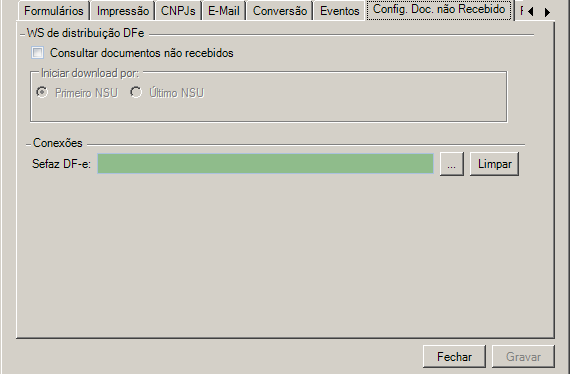 o.A aba Configuração de documento não recebido permite consultar os documentos autorizados na Sefaz que não foram recebidos pelo sistema.