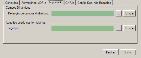 m.Na aba Impressão, selecione o cadastro de campos dinâmicos para os arquivos DAMDFE exportados através do módulo e-Forms ColdWeb.