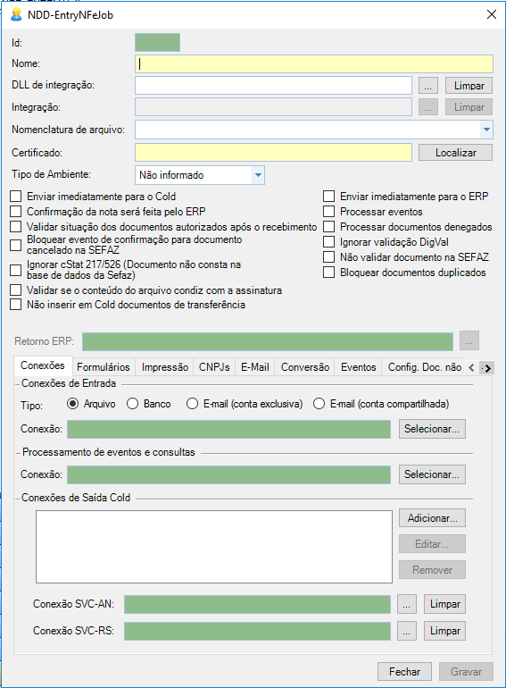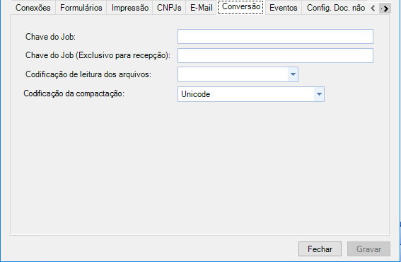 A aba conversão está disponível somente para entrada de eventos de manifestação do destinatário. Caso o Job não possua entrada baseada em banco de dados, o campo Chave do Job é opcional. Utilizando conexão de entrada baseada em BD, será obrigatório o preenchimento deste campo. |