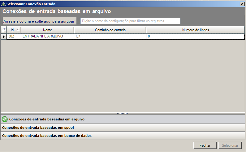 Como está se configurando um Job do tipo NF-e, a primeira conexão selecionada deverá ser a conexão de saída NF-e.