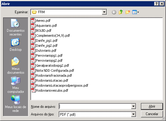 . Será exibida uma tela para selecionar a máscara de impressão PDF do DANFE. Selecione o arquivo desejado e clique em Abrir
