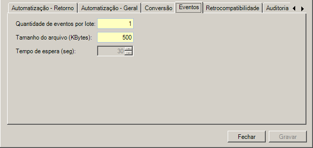 •Este campo é desabilitado quando o campo Quantidade de eventos por lote possuir o valor 1.