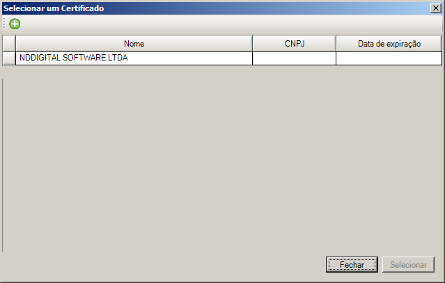para encontrar o certificado previamente cadastrado, a seguinte tela é apresentada: