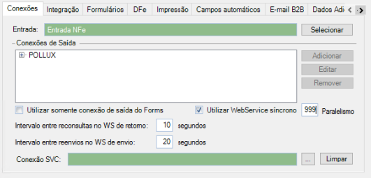 28. O tempo em segundos referente ao campo "Intervalo entre reenvios no WS de envio" possibilita o controle de reenvios dos lotes pendentes de envio, podendo variar de 20 à 999 segundos.