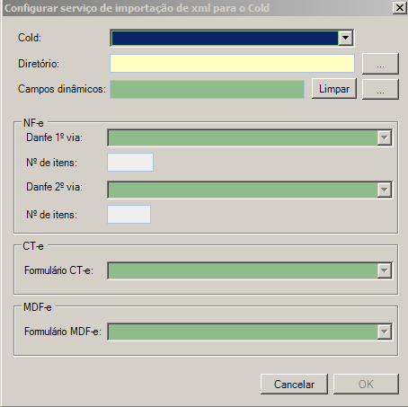 Marque a definição de campos dinâmicos desejada para quebras de linha durante a importação do XML para o Cold, e clique no botão