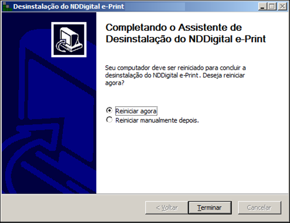 Para desinstalar o NDDigital e-Print, acesse o menu Iniciar>Programas>NDDigital>e-Forms>e-Print>Uninstall.