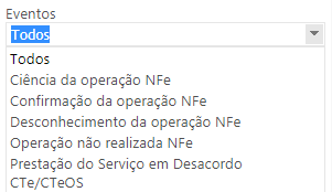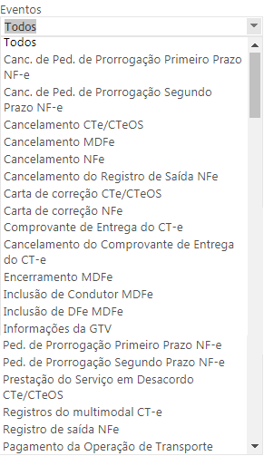 Selecione o tipo de Evento disponíveis abaixo, realize o filtro e posterior efetue um clique em Pesquisa.