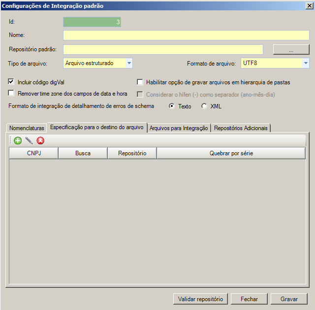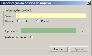 •Repositório: Onde deve ser indicado o diretório em que arquivos separados serão salvos. Caso não seja encontrado o CNPJ cadastrado, será utilizado o diretório padrão.
