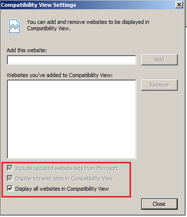 Após clicar na opção acima irá apresentar a tela de "Configuração de modo de Compatibilidade", desmarcar a opção abaixo e clicar em fechar: