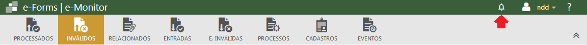 A opção de notificações está disponível para o e-Monitor o mesmo pode ser acessado efetuando um clique no simbolo de clip1982.