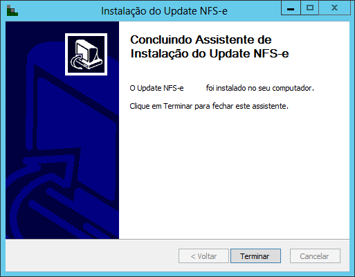 Passo 3: Tela de finalização. Neste momento o update já foi aplicado com sucesso, clique em