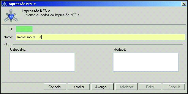 Passo 28: O campo Rodapé é utilizado para informar os comandos PJL da impressora para rodapé de página.