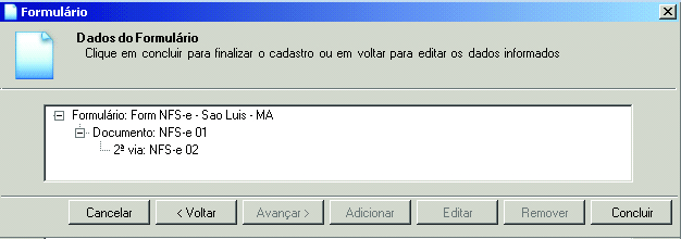 Adicionando um Documento do Formulário de Impressão NFS-e