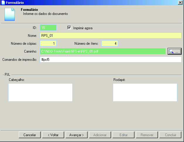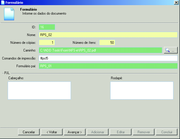 Passo 17: O campo Rodapé é utilizado para informar os comandos PJL da impressora para rodapé de página.
