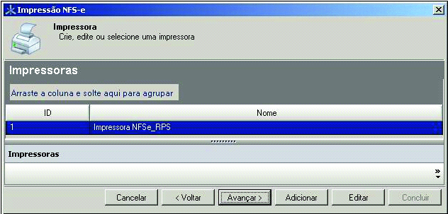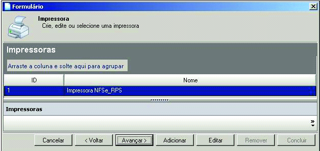 Seleção do Formulário RPS cadastrado. Passo 29: A tela Impressoras será exibida, selecione uma impressora já cadastrada e clique no botão