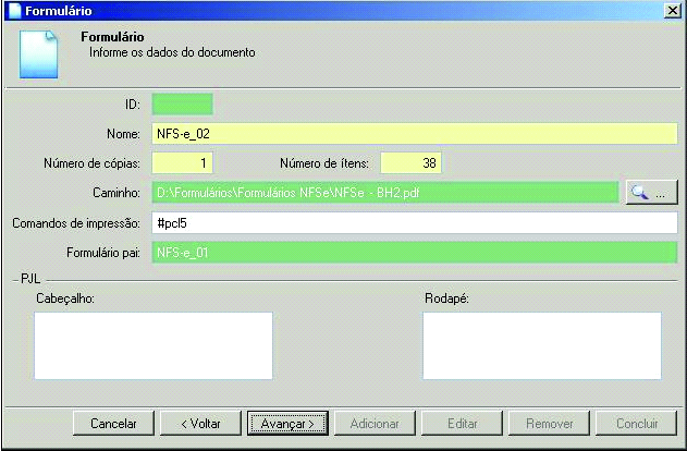Passo 22: O campo Cabeçalho é utilizado para informar os comandos PJL da impressora para cabeçalho de página.