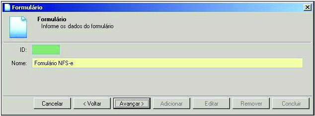 Passo 7: Na tela exibida, informe o nome do formulário no campo Nome. Após informar o nome, o botão Avançar é habilitado, clique nele para prosseguir com a configuração.