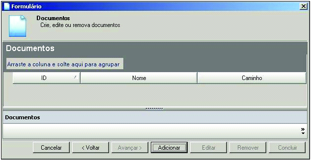 Passo 8: Na tela Documentos, clique no botão Adicionar para abrir a tela de configuração dos dados do novo documento.