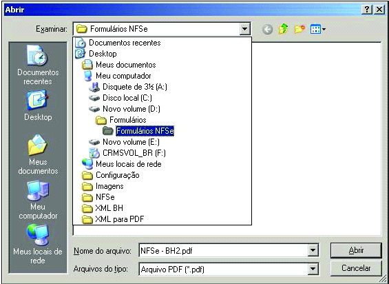 Seleção do arquivo PDF do Documento do Formulário pai da Impressão NFS-e