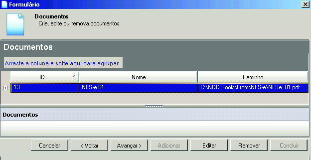 Adicionando um Documento do Formulário de Impressão NFS-e