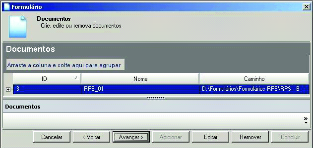 Adicionando um Documento do Formulário de Impressão RPS