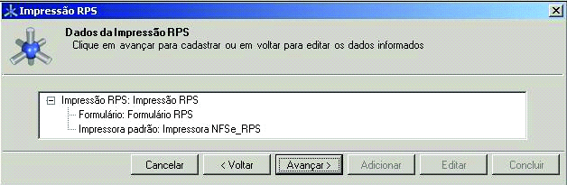 Passo 30: A tela Dados da Impressão RPS será exibida, confira os dados cadastrados e clique no botão Avançar.