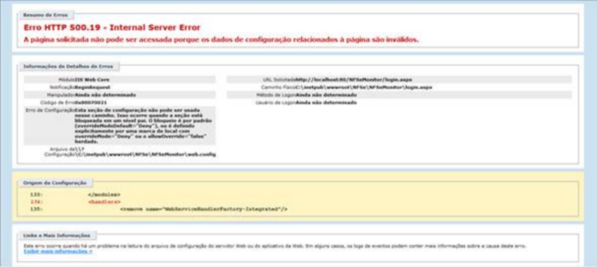 Não possui os requisitos para a instalação do aplicativo do NFS-e. Pode se faltar serviços de Funções que não foram habilitadas na instalação do IIS (Internet Information Service).